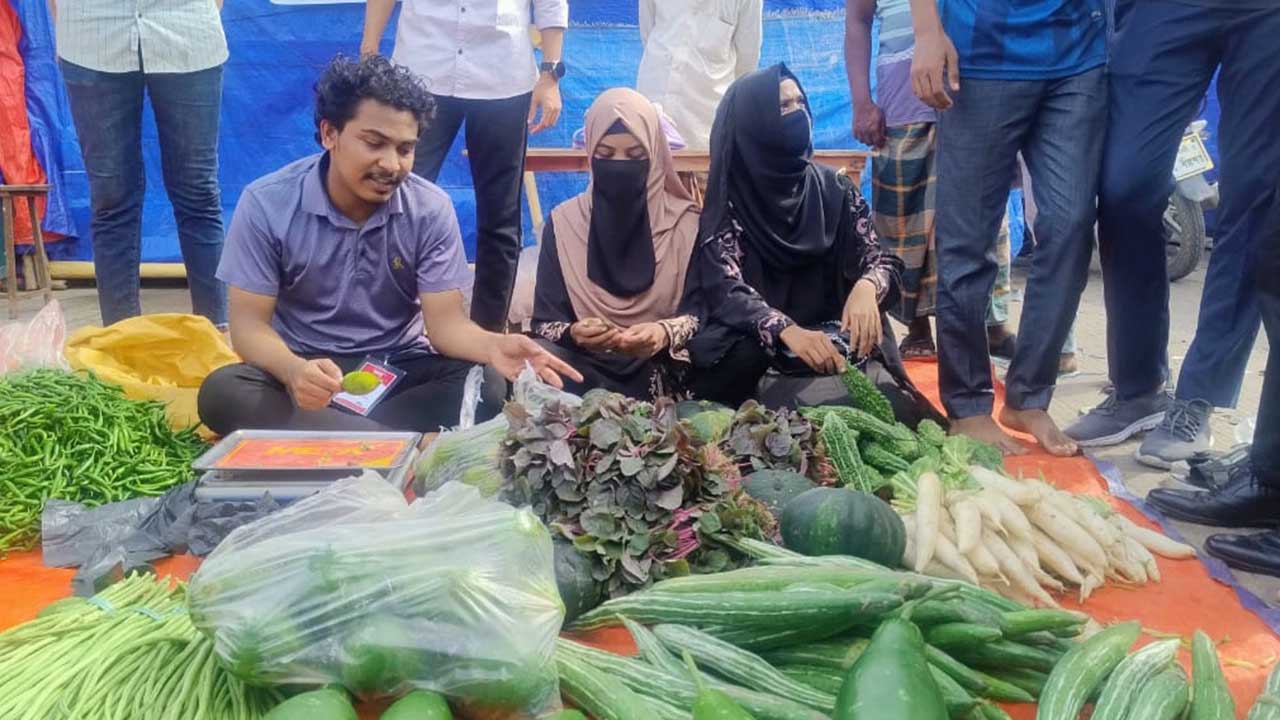তিনি আরও বলেন, ‘বেশিরভাগ ক্ষেত্রে দেখা যায়, কৃষকরা তাদের উৎপাদিত পণ্যের ন্যায্যমূল্য পান না। যেমন ধরেন ১টি লাউয়ের বর্তমান বাজার মূল্য ৭০ টাকা অথচ কৃষকদের কাছ থেকে পাইকাররা ৩৫ টাকা করে প্রতি পিস কিনে নেন। এতে এক দিকে যেমন কৃষকরা ন্যায্যমূল্য থেকে বঞ্চিত হচ্ছে, একইসঙ্গে ক্রেতারাও ন্যায্য মূল্যে পণ্য কিনতে পারছে না। প্রতি কেজি শসার মূল্য নির্ধারণ করা হয়েছে ৪৫ টাকা। যে টাকাটা সরাসরি কৃষক পাবে।